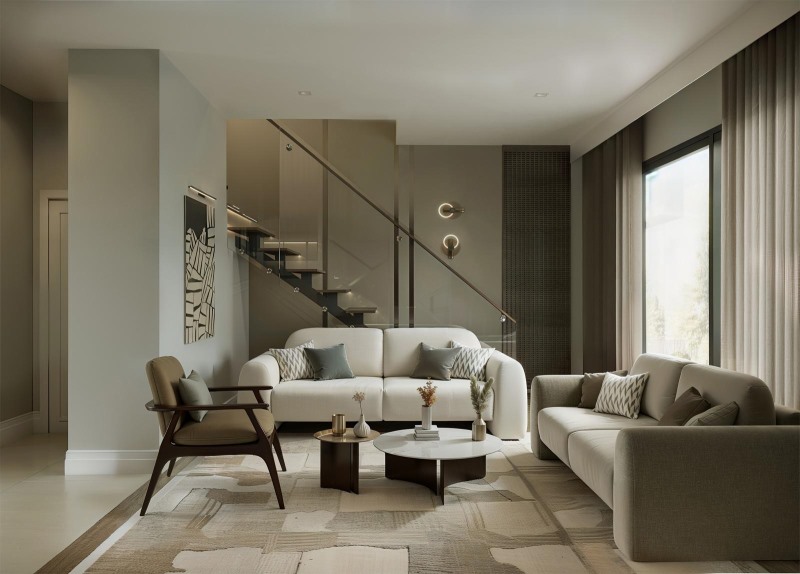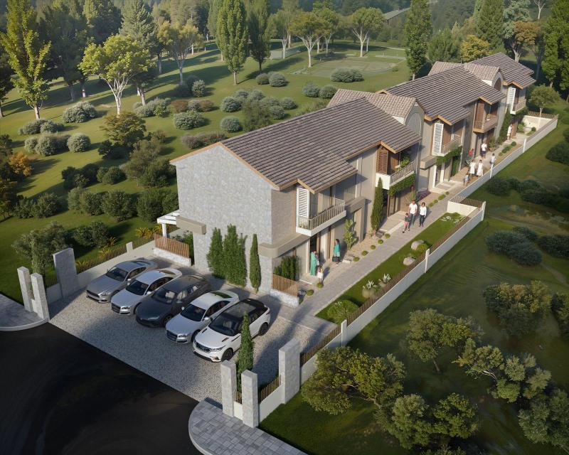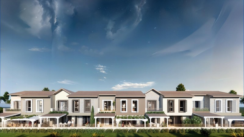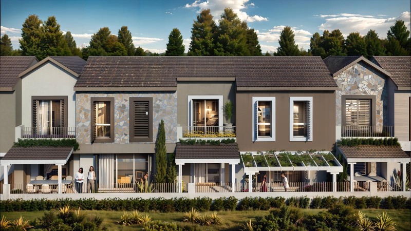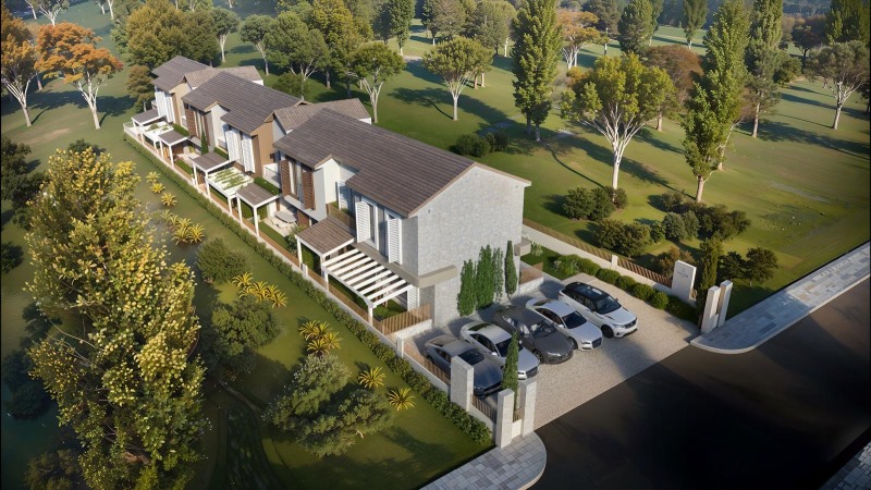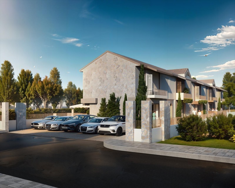 135 m² brüt alana sahip 5 adet bitişik nizam villa (A-B-C-D-E Blokları).
